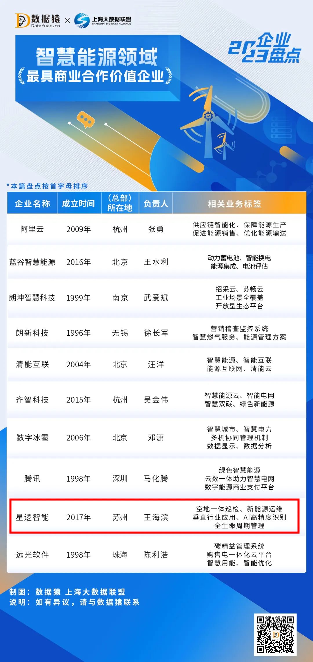 在此背景下,由数据猿内部员工组成的初审小组、核心粉丝群组成的公审团,以及外部行业专家成员组成的终审团,通过直接申报交流、访谈调研、外界咨询评价、匿名访问等交叉验证的层层筛选推荐机制下,最终形成了《2023中国智慧能源领域最具商业合作价值企业盘点》,星逻智能荣列其中!