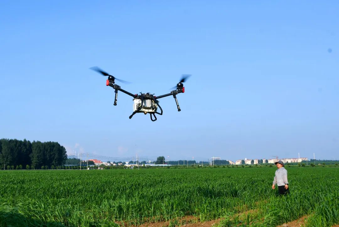 这边田间地头指导忙,那边无人机植保作业同样热火朝天。在邻近的谷子示范方,一台植保无人机在种植大户曹现伟的操作下腾空而起,沿着农田匀速飞行,时而低空穿梭,时而空中悬停,机身下喷出的白色雾化农药均匀洒向农田。今日汝阳,赞14