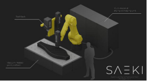 通过整合增材制造(AM)和CNC技术,Saeki能够在不需要进行繁琐后处理,如表面修饰等工序的情况下完成产品制造。目前,该公司已经研发了一个容积超过4立方米(约141.2立方英尺)的大型自动化数字制造单元,也被称为“dfab”。
