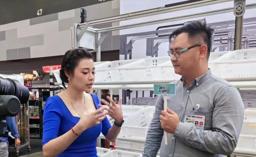 立镖海外项目支持经理邹楚接受了泰国国际物流展官方媒体采访,向对方介绍了立镖分拣系统与其他同功能产品的区别、优势,并介绍了立镖在东南亚地区的发展。他表示,非常高兴大家喜爱立镖“小黄人”,也期待“小黄人”能在更多地方发光发热。