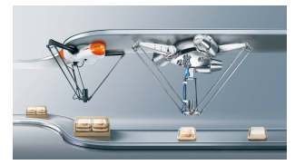 Delta 机器人: Delta 机器人也称为并联机器人,具有独特的设计,三个手臂连接到一个底座。它们以高速和高精度而闻名,适用于拾放、包装和分类等任务。Delta 机器人经常用于食品和制药行业,因为它们能够处理精致的物品而不造成损坏。