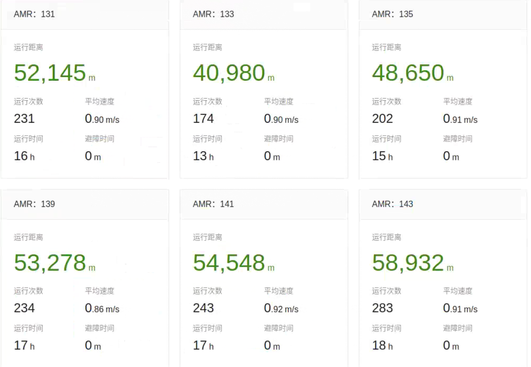 工厂全天处于运行状态,同时布料的多少也会影响AGV搬运机器人的搬运时间。通过数据可以看到,科钛AGV搬运机器人一天的运行距离在50km左右,可以超长待机18小时。一天24小时,除去充电时间6小时,可以说AGV搬运机器人是7*24小时工作。相比之下,一个员工不可能连续搬运18小时,搬运货物距离长达50km。