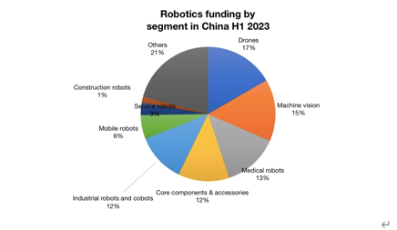 尽管如此,中国机器人行业也受到了当前经济疲软的影响。根据我们的数据,2023年上半年,风险投资在机器人领域的投资额下降了42%。因此,在这个领域,中国的融资活动虽然仍然高于我们记录的欧洲水平(6.5亿美元),但却低于美国(14.8亿美元)。