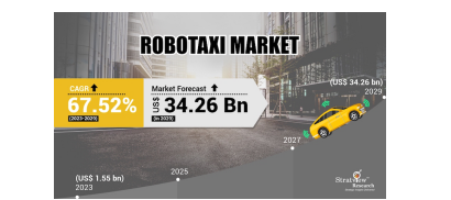 由于路上只有几辆机器人出租车,到 2022 年,全球机器人出租车市场将略低于十亿美元大关。随着技术的发展和自动驾驶变得更加可靠和普遍,预计全球机器人出租车市场将大幅增长,到 2029 年将突破 342.6 亿美元。