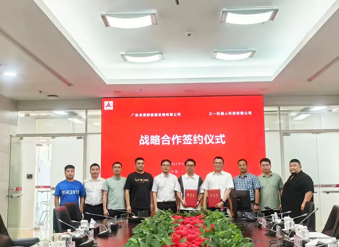 近日,三一机器人与广东卓意新能源发展有限公司(以下简称广东卓意)在长沙签署战略合作协议。广东卓意董事长黄一帆与三一机器人董事长郭承志代表双方签约。