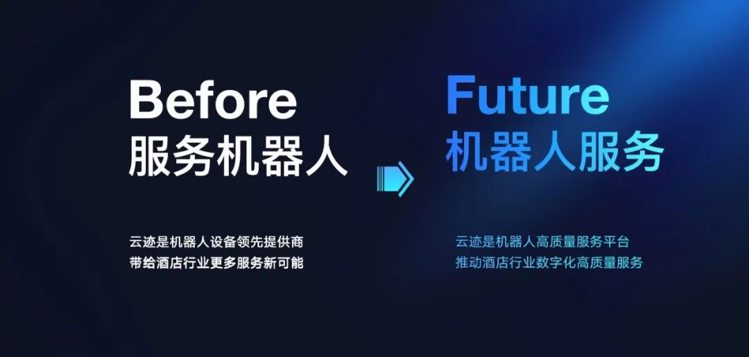 以前也许大家认为云迹是一家机器人制造商和售卖商,那么现在和未来,云迹是一家“机器人高质量服务平台”,我们愿意为推进酒店行业数字化与高质量服务尽我们最大的力量。