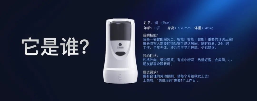 Ta为我们的世界创下了很多的标准。有性能、功能、安全、服务的标准,它也成为了酒店设施里的一个标签,叫“机器人服务”。同时,Ta凭借很多点赞,荣登了酒店的首页的推荐条:“这家酒店有机器人服务”。