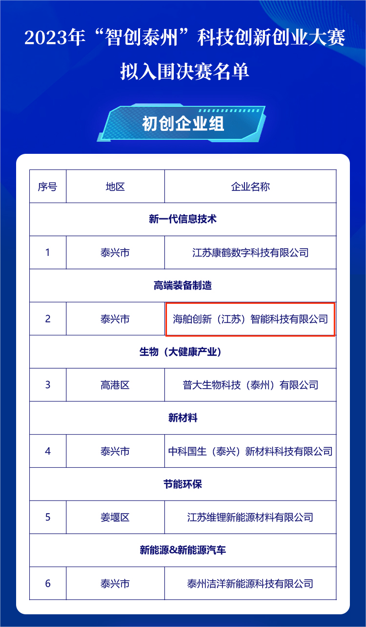 9月7日-8日,2023年“智创泰州”科技创新创业大赛复赛成功举办。大赛组委会对报名参赛的303个项目进行了初评,按新一代信息技术、高端装备制造、生物(大健康产业)、新材料、节能环保、新能源/新能源汽车等6个行业共遴选出54个项目参加复赛。