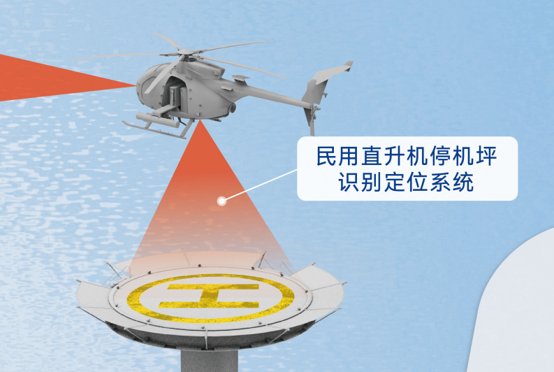 基于激光雷达的精准感知性能,可准确识别停机坪的“H”标识,引导飞行载体精准停降,同时可实时检测飞行载体距离停机坪的具体高度,帮助飞行员更安全、进准、高效地进行着陆操作。