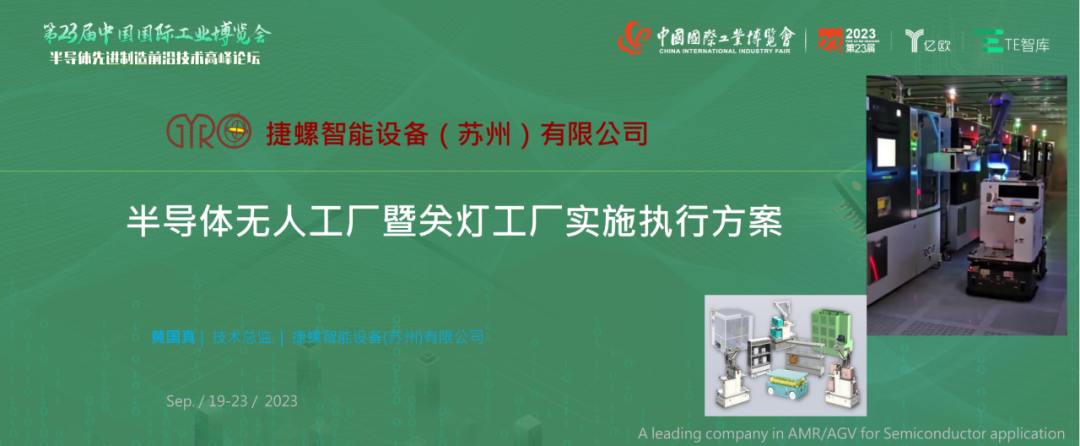 值第23届中国国际工业博览会召开期间,捷螺智能技术总监黄国真先生应邀于9月20日上午参加半导体先进制造前沿技术高峰论坛,分享了捷螺智能关于半导体无人工厂暨关灯工厂的先进技术。