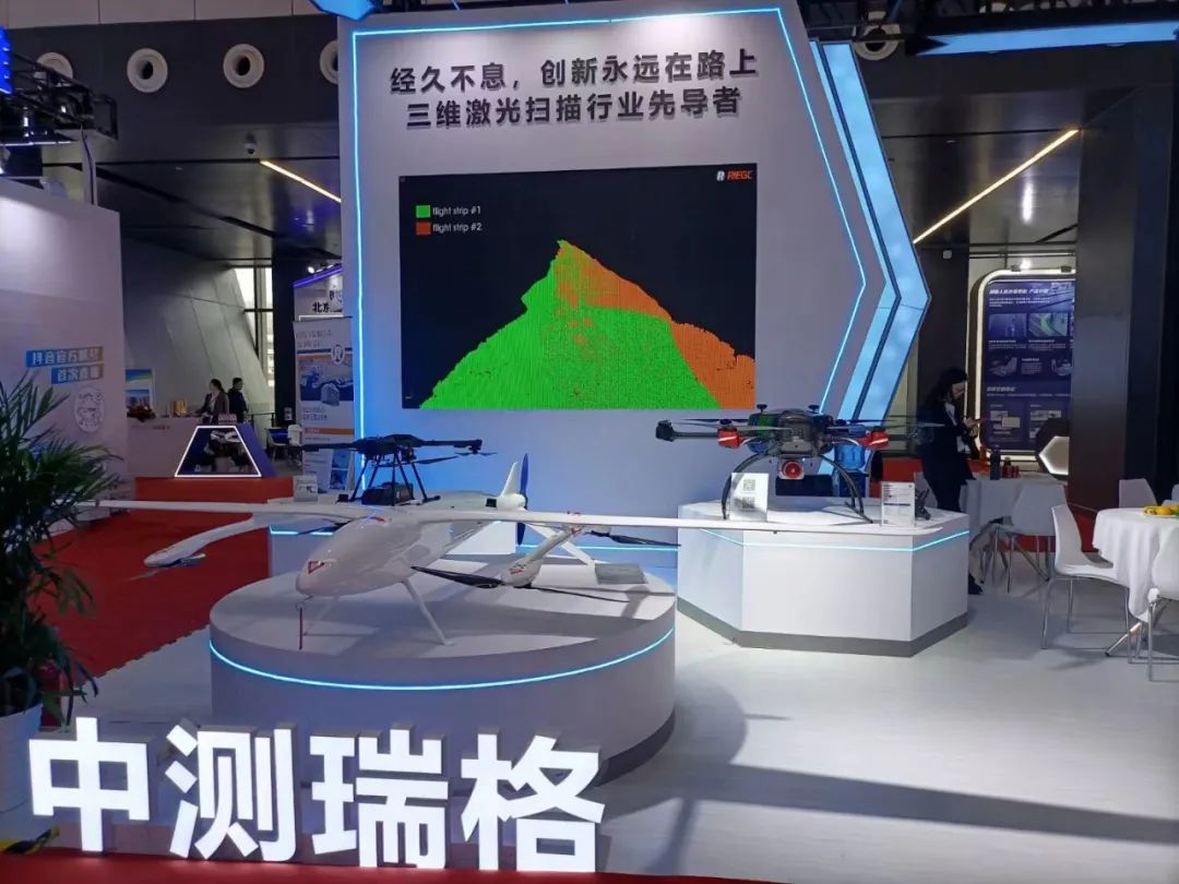 展会中第一次公开展示了中测瑞格与斗山创新共同开发的全球第一款基于专业激光雷达的氢动力长续航测绘应用方案。该解决方案基于斗山DT30N氢无人机平台以及中测瑞格的RIEGL_VUX160.是今年8月开发完成并可以实用化的高效测绘解决方案。