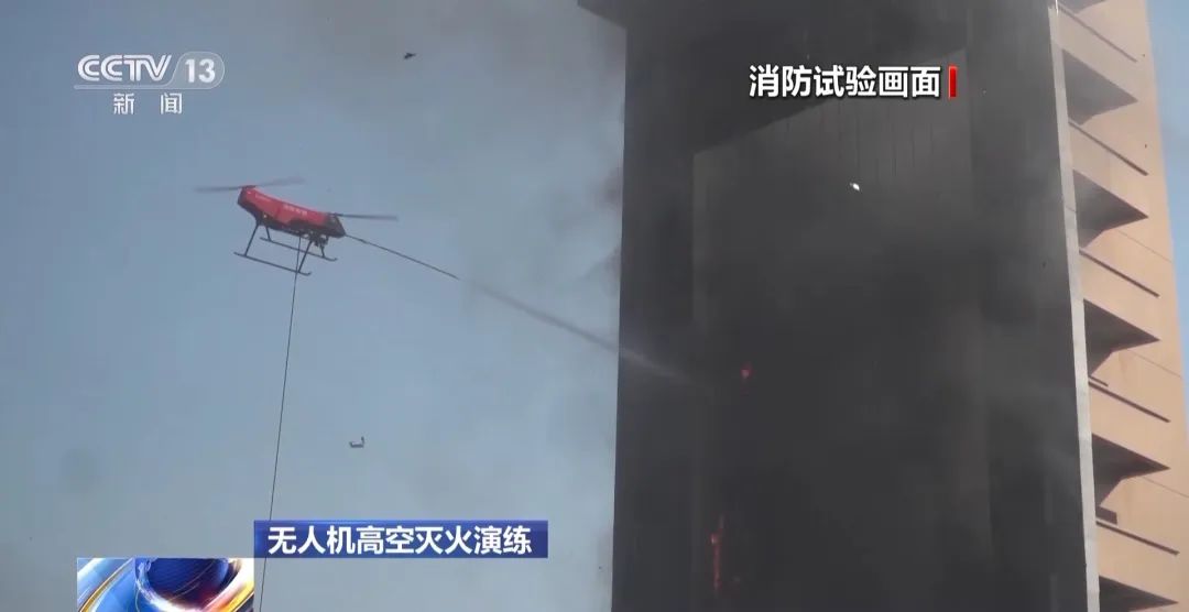 应急管理部火灾事故原因调查专家 张万民:这款装备消防局正在组织开展试点应用示范项目,从未来的角度上讲,加上举高消防车,加上无人机,两种技术手段的结合,可以满足现有高层建筑室外空间灭火技术的要求。