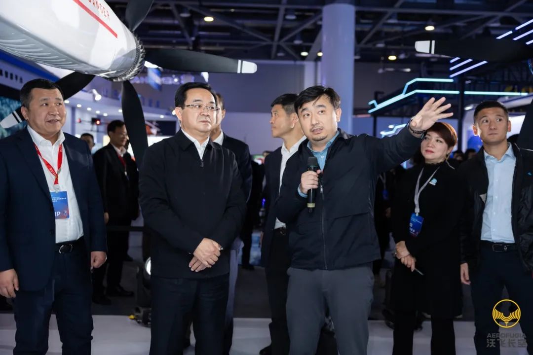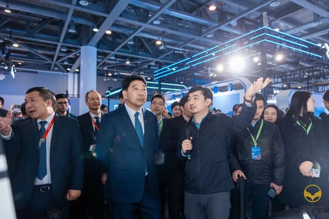 浙江省副省长、省政府党组成员柯吉欣,浙江省人大常委会副主任、党组副书记高兴夫等领导莅临了沃飞长空展位现场参观并对沃飞的AE200飞行汽车予以了肯定。