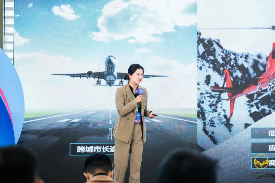 沃飞长空市场部负责人费岚在开幕式主旨论坛上,分享了eVTOL/飞行汽车的场景应用与沃飞长空的产品进展,公开介绍了旗下产品AE200面向适航的构型改进相关情况。目前适航构型原型机已总装下线,正在持续开展相关密集试验试飞工作。