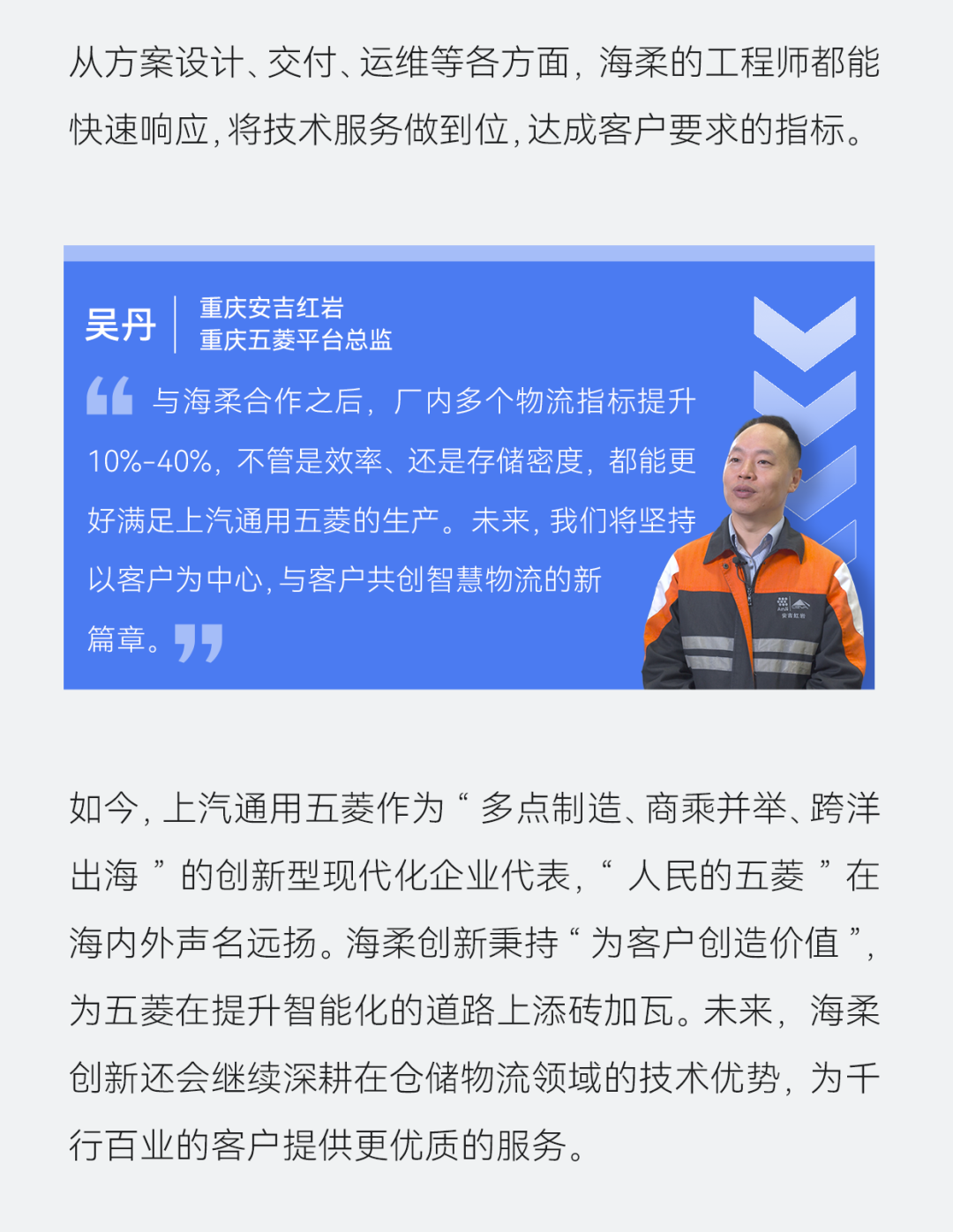 海柔创新是箱式仓储机器人系统的专家和领航者,致力于通过机器人技术和人工智能算法,提供高效、智能、柔性、定制化的仓储自动化解决方案,为每个工厂和物流仓库创造价值。