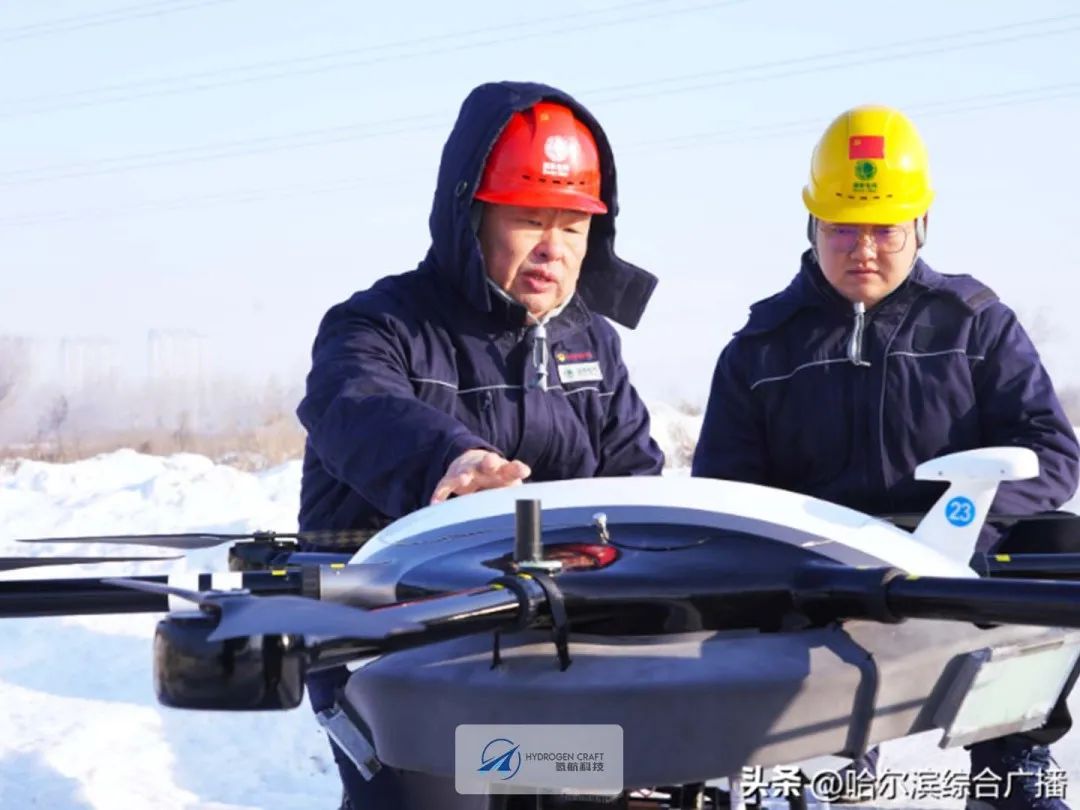 在严寒地区的无人机巡检一直是行业内的难题。然而,在这次测试中,国网哈尔滨供电公司与氢航科技的工作人员共同协作,克服了低温环境的挑战,顺利完成了续航稳定性、应急处置及时性、长距离中继等测试任务。这一成果充分证明了氢航科技的氢旋四号氢动力无人机在低温环境中的性能稳定可靠以及长航时的优势。