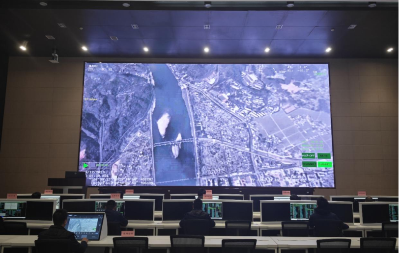 ▲“翼龙”-2H应急救灾型无人机EO画面传输至指挥中心大屏