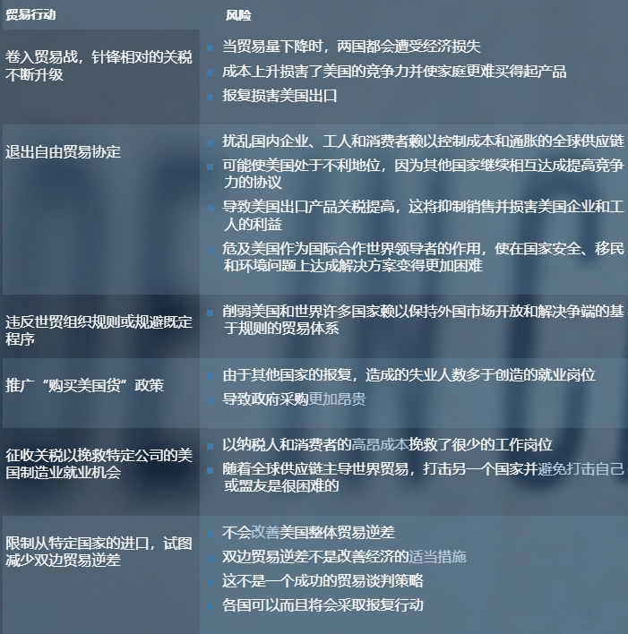 与中国的贸易战表明,全球化已在美国和世界经济中根深蒂固,以至于破坏其复杂的活动网络可能会带来其他破坏性后果。以下列出了各种保护主义行为及其经济、外交和国家安全风险。