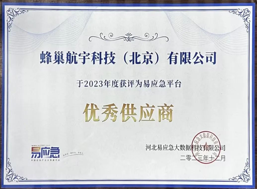 2023年12月,2023首届中国(唐山)职业安全健康和应急管理领域创新发展大会暨安全应急产业博览会(简称“唐山安博会”)在唐山南湖国际会展中心盛大启幕,蜂巢航宇荣获易应急平台优秀供应商。