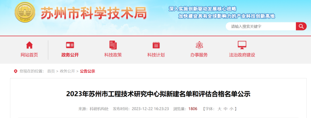 近日,苏州市科技局公示了2023年苏州市工程技术研究中心拟新建名单。苏州海豚之星智能科技有限公司入围此次评选。