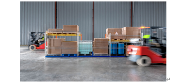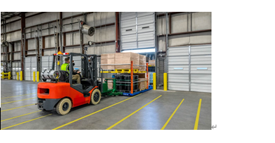 Vaux 货物移动系统集成了软件和硬件、一个 26 英尺长的移动平台和一个可与大多数叉车连接的耦合器,用于移动拖车上的货物。装满整个拖车的货物被放置在移动平台上,当卸载到仓库地面时,可以由多台叉车同时从四面八方为其提供服务。