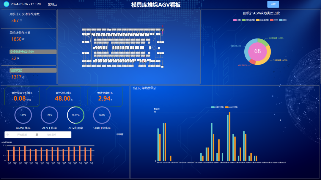 现场AGV由RCS调度系统统一管理,全程实现无纸化与自动化作业。RCS调度系统与上层MES系统、立库WMS系统进行信息交互,可根据上层系统发布的任务信息,实现AGV执行搬运任务的最优调配,AGV运行路径、运行状态、任务状态信息均一目了然。