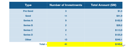 图 3:2023 年 12 月按投资类型和金额分列的机器人技术融资情况