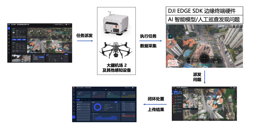 为此,广州知行机器人科技有限公司将大疆机场 2,集成到“知行天空地一张图智能平台”,提供高效协同的巡查方案。