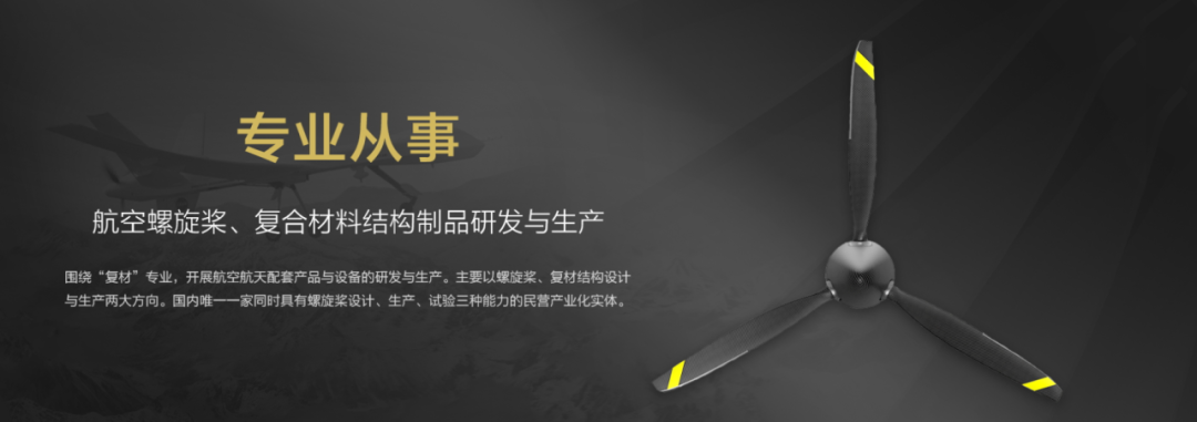 在螺旋桨产业方向,建成了涵盖设计、生产、试验和售后等全寿命周期的科研生产平台,成为国内第一家具备上述综合能力的民营产业实体,先后完成了临近空间低雷诺数螺旋桨(大型太阳能飞机螺旋桨、平流层浮空器螺旋桨)、大型中高空察打一体无人机用螺旋桨、电动变距恒速螺旋桨、液压变距恒速螺旋桨、涵道螺旋桨、涵道风扇等系列化的螺旋桨产品;特别是掌握了自动变距系统核心技术,研制了国内大型无人机高端恒速变距复合材料螺旋桨并交付用户使用。