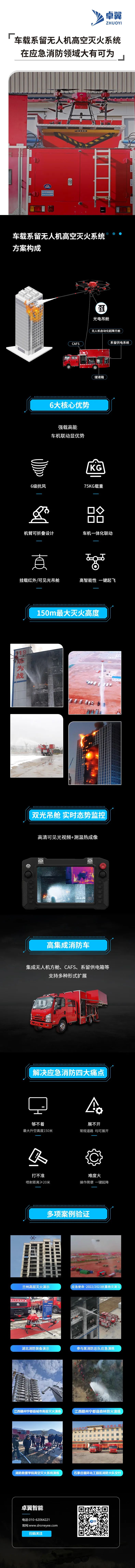 卓翼智能作为全球领先的智能无人系统解决方案生产商及供应商,敏锐地洞察到技术变革带来的机遇,首创具备实战应用价值的车载系留无人机高空灭火解决方案,填补了我国百米以上高层灭火救援领域技术的空白,成为了国内高空灭火领域的技术“引领者”。