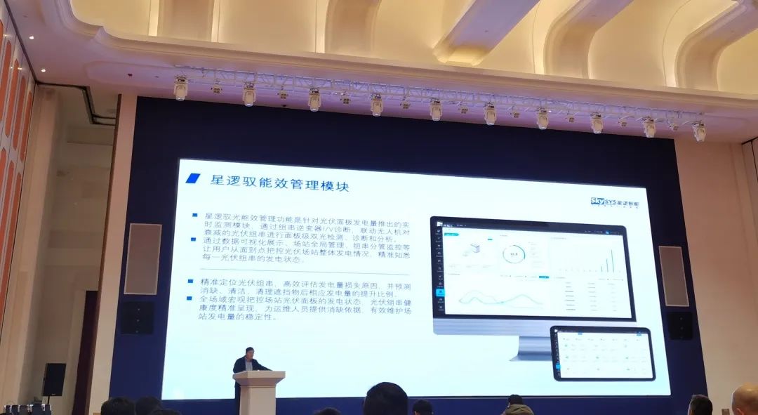 主题演讲环节,星逻智能联合创始人钱茂冬以《智能机器人在光伏发电中的智能运维与应用》为主题发表演讲。在当前无人机智能化应用大力发展的背景下,星逻突破无人机在光伏行业的单一巡检模式,将行业现状抽丝剥茧,通过智能清洗机器人为光伏场站智能化的应用添砖加瓦,开拓光伏场站智能化应用新思路,有效维护光伏场站发电水平。
