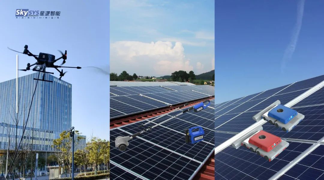 根据各类型场站的实地情况,星逻针对性地推出了三种解决方案,分别是星逻自研的Skysys Lantern负压式清洁机器人、无人机高压水枪智能清洗系统、手持光伏清洁机器人来满足光伏面板的清洁需求。