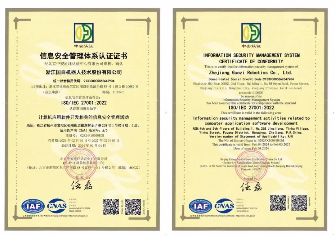 作为国内领先的移动机器人技术提供商之一,国自机器人一直将信息安全视为企业的生命线。在此次认证过程中,国自机器人展现出了高度的专业性和严谨性,严格按照ISO27001标准的要求,全面梳理和优化了公司的信息安全管理体系。ISO27001信息安全管理体系认证充分体现了国自机器人在信息安全管理和保护方面的实力和信誉。