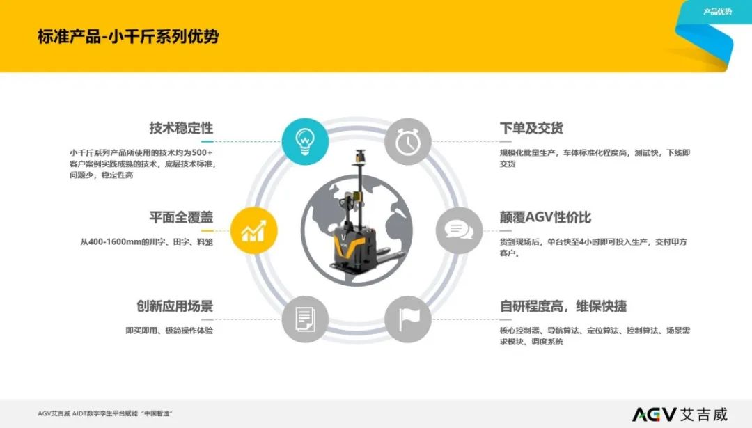 艾吉威机器人深耕移动机器人领域多年,基于无人叉车+AIDT数字孪生平台解决方案,帮助企业实现不同场景下的物流无人化需求。近期,艾吉威"小千斤”系列无人叉车落地多家头部物流企业,并出口马来西亚、西班牙等国,助力客户整体智能化水平提升,大大提升各物流要素质量和资源配置效率,为维护全球产业链供应链韧性与物流稳定贡献艾吉威智慧和力量。