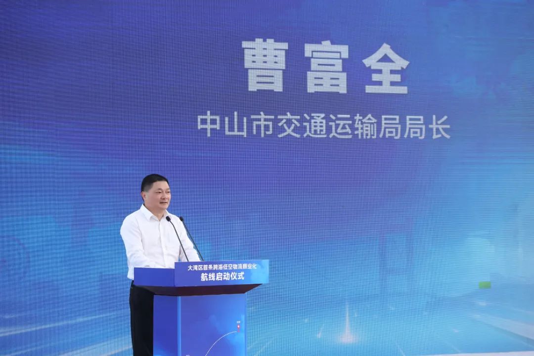 中山市交通运输局局长曹富全说到“:大湾区首条跨城低空物流商业化航线的开通,不仅将极大提升中山与深圳之间的快递物流效率,降低物流成本,为企业发展注入新的活力,更将推动两地经济、社会深度融合,实现互利共赢。"