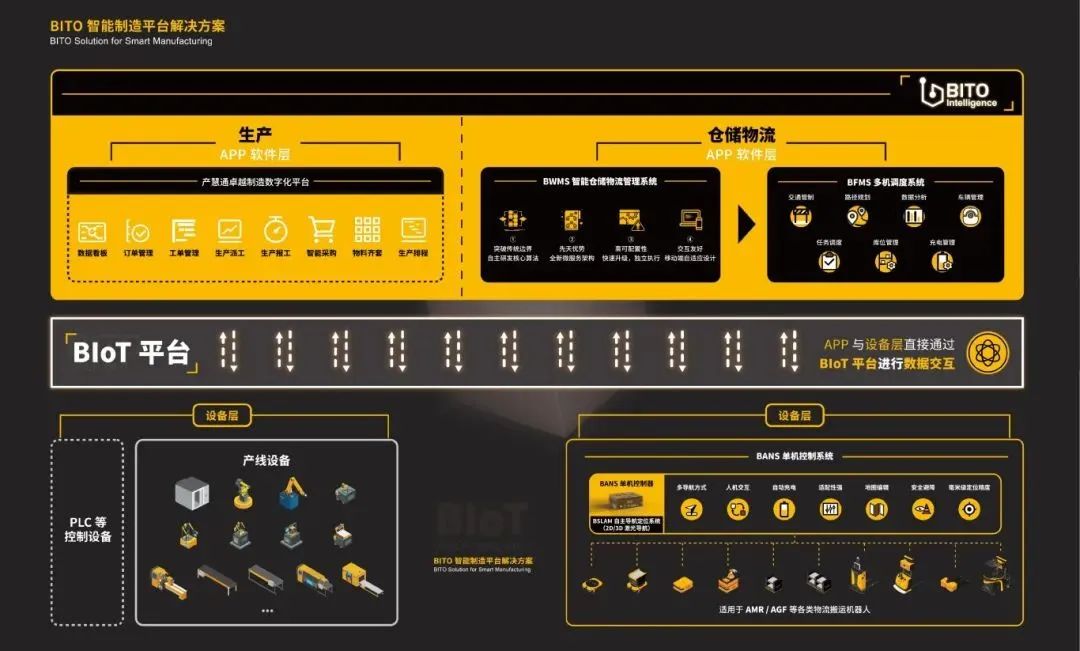 从数据决策到智能控制,宾通打造出端到端一体化智能制造解决方案,包括:BITO智能生产决策系统、BFMS多机调度系统、BANS单机控制系统、BSLAM自主导航定位系统。并且,宾通智能给它们取了非常有趣的名字——刘邦、韩信、愚公、萧何,也蕴含着宾通对产品的期望和定位和希望。