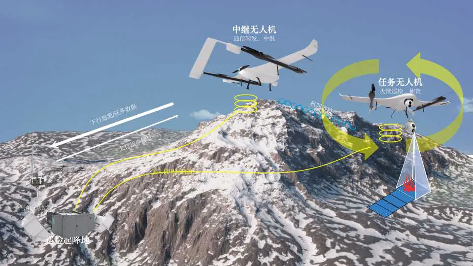 应急抢险、供电抢修时,因距离、信号传输等限制无法第一时间获取应急现场视频。无人值守系统利用MESH无线电自组网技术,构建空中中继飞行模式,达到跨越障碍、延伸飞行距离的作用,有效解决任务区无电力供应、无运营网络,不具备修建地面中继条件等问题,将现场实时画面传输至指挥中心。