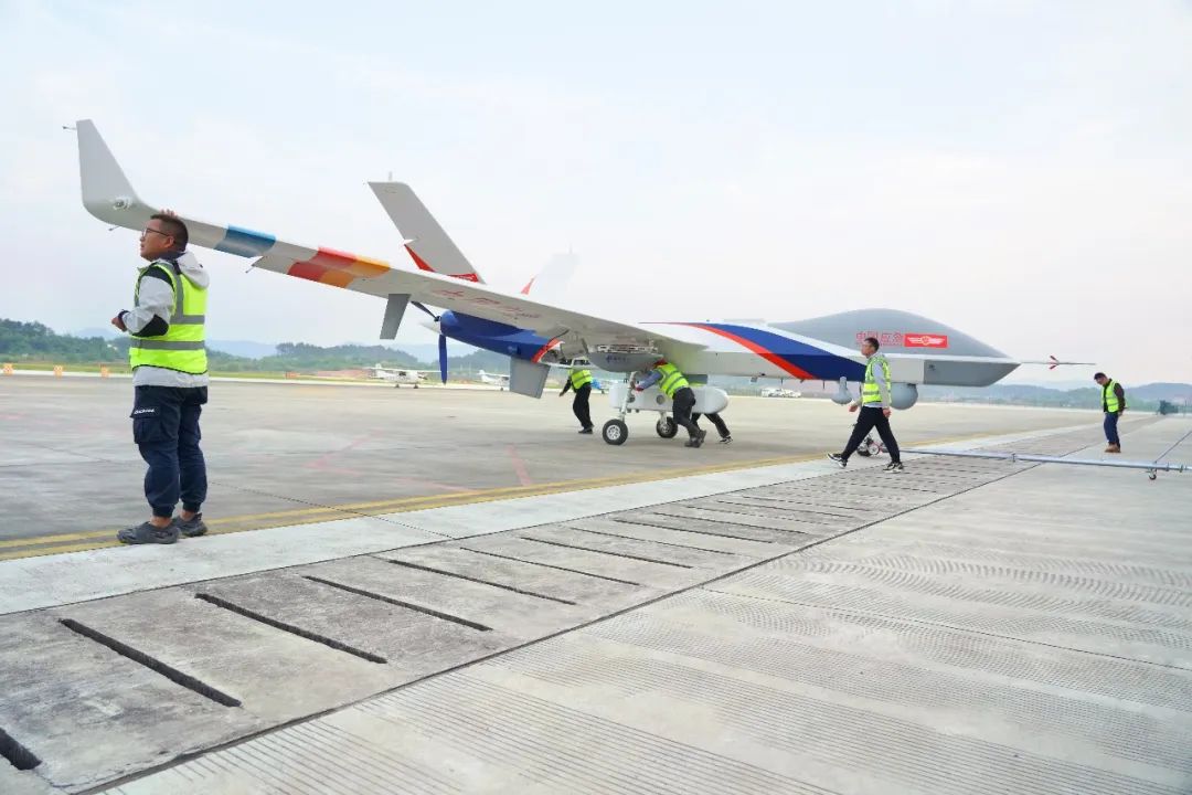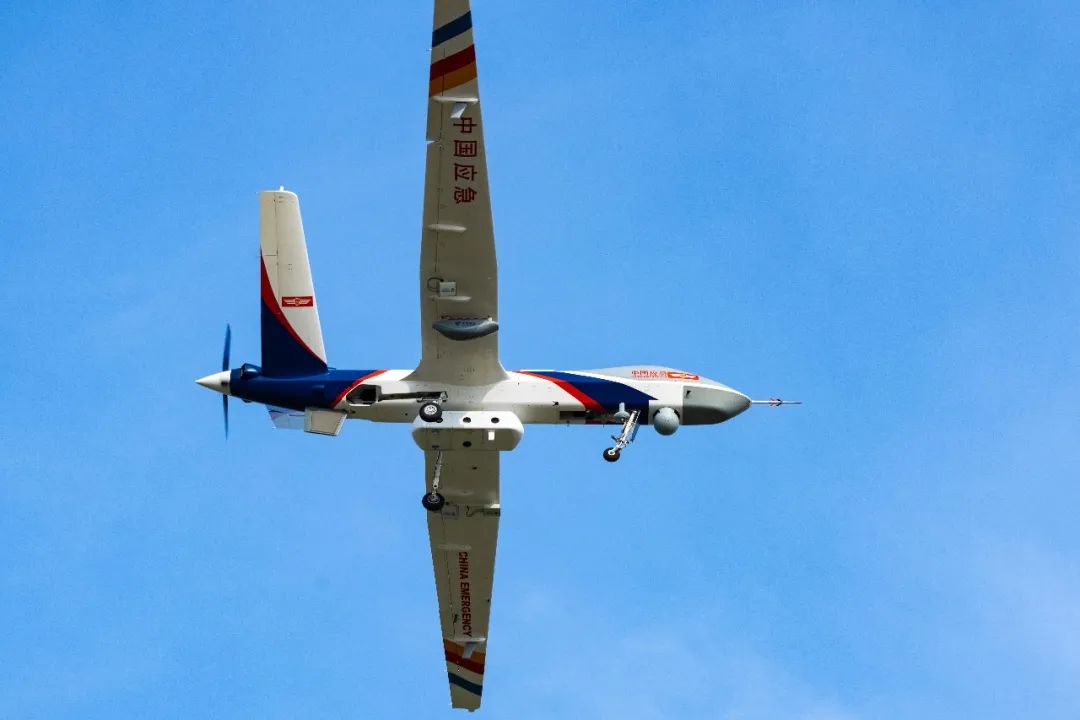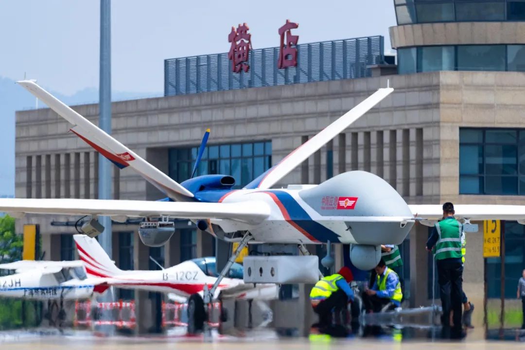 5月10日凌晨5时,“翼龙”-2H应急救灾型无人机保障团队和飞行机组已在横店机场就位,紧张有序地进行着飞前准备工作;7时5分,应急管理部调派“翼龙”-2H应急救灾型无人机从浙江横店起飞,飞赴浙江金华,率先到达“应急使命•2024”超强台风防范和特大洪涝灾害联合救援演习现场,演习拉开序幕。