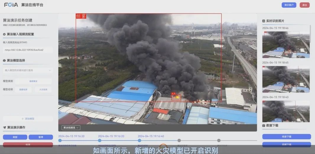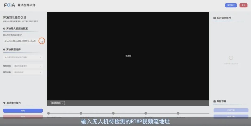 ①支持RTMP视频流输入:在平台上输入需要识别的视频流地址后,就可以准备开启识别任务。