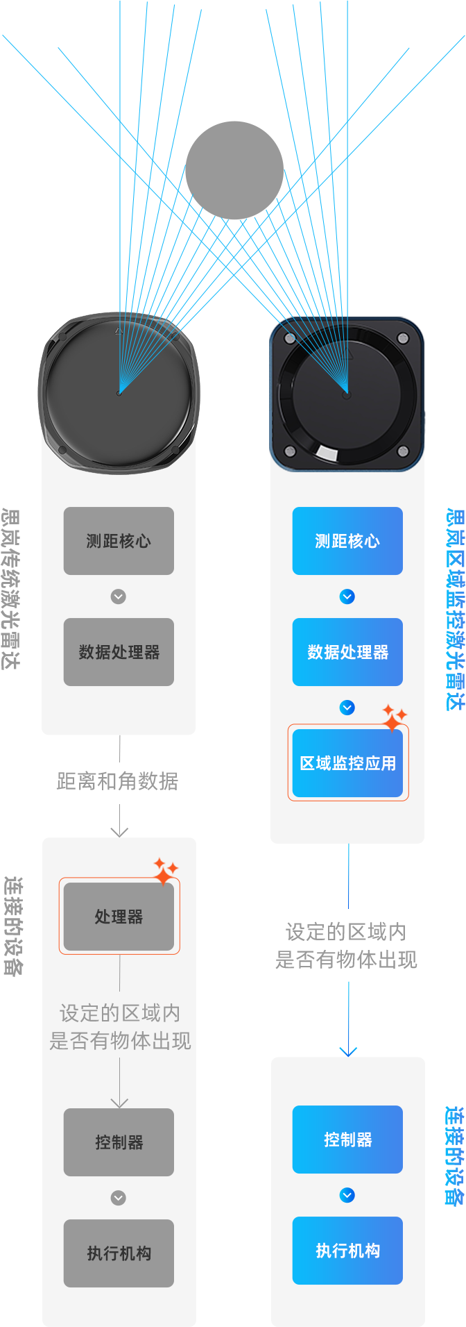 以下为思岚区域监控雷达Vs传统雷达数据处理的过程: