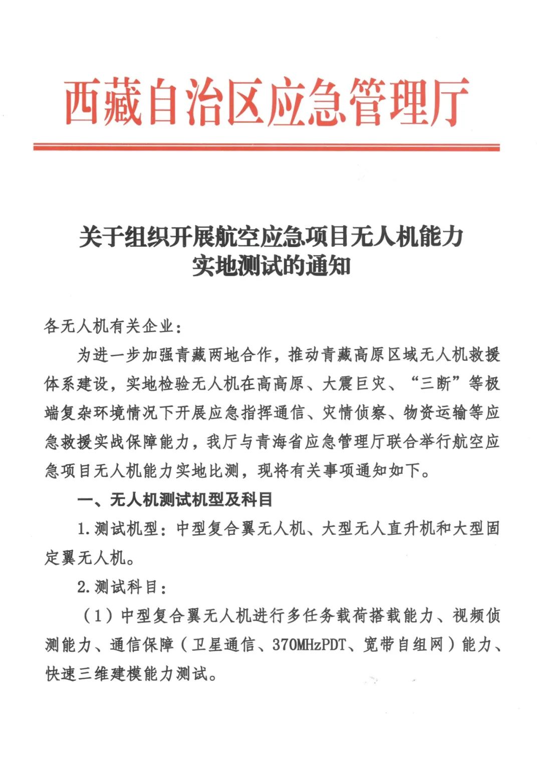 此次实地测试旨在检验中大型无人机救援平台在西藏自治区高原高海拔、高寒低压等特殊地理环境下适用性,同时加快建立大小结合、高低协同、反应灵敏、适应实战的无人机应急救援体系,形成以无人机救援平台为基础的通信保障、灾情侦察、人员搜救等新质救援力量。