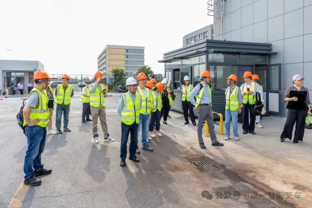 工厂参观期间,卓一智能叉车工程部主管带领客人一边参观新工厂,一边详细介绍已投产新工厂的建设情况和生产规模。