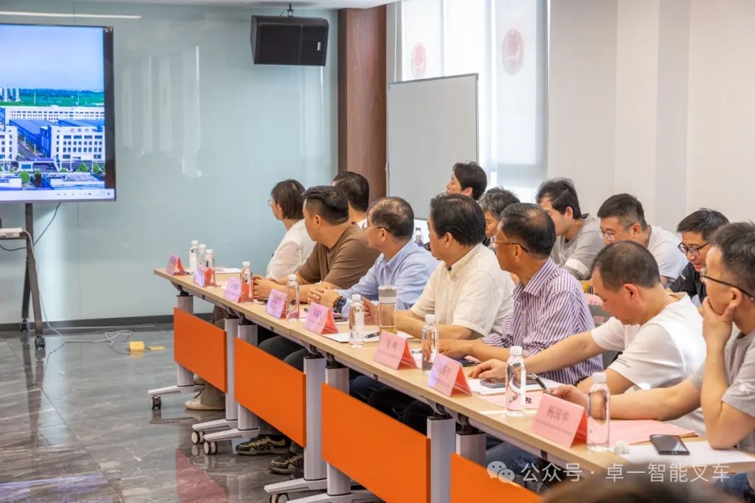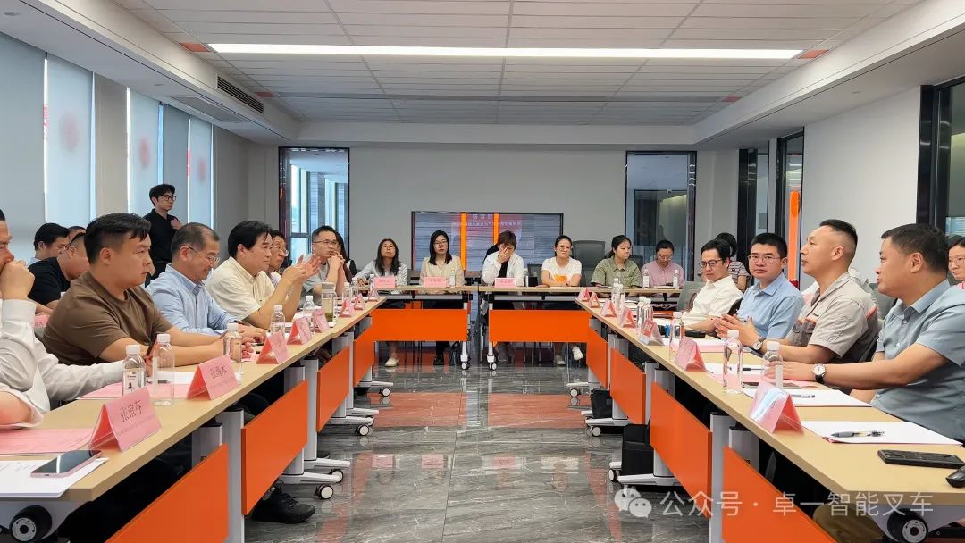 座谈交流会在卓一厂区会议室举行,卓一智能叉车副总经理吴爱君致欢迎词。