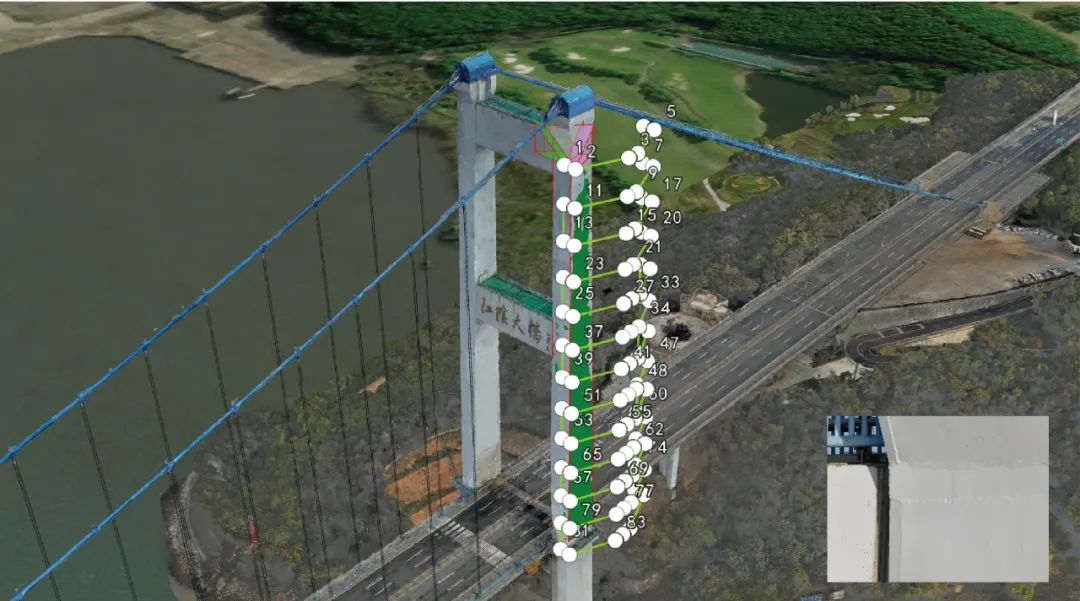 基于桥梁的精细化模型,工作人员按照桥梁结构名称,对索夹、悬索、主缆等各部件点云进行分类。同时,按照不同部件的结构特点,设置不同的参数和航线任务。