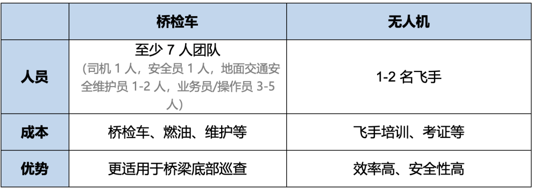 2.效率低、成本高:桥检车每次只能检查桥梁一侧,需多名作业人员共同完成作业。