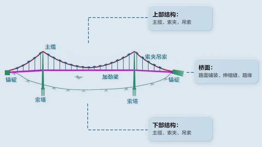 江阴大桥全桥没有桥墩,主要依靠桥上方的两根主缆进行承重。为了保障桥梁的安全运营,管养部门需要定期对桥梁主缆、索夹、吊索等结构进行巡查。