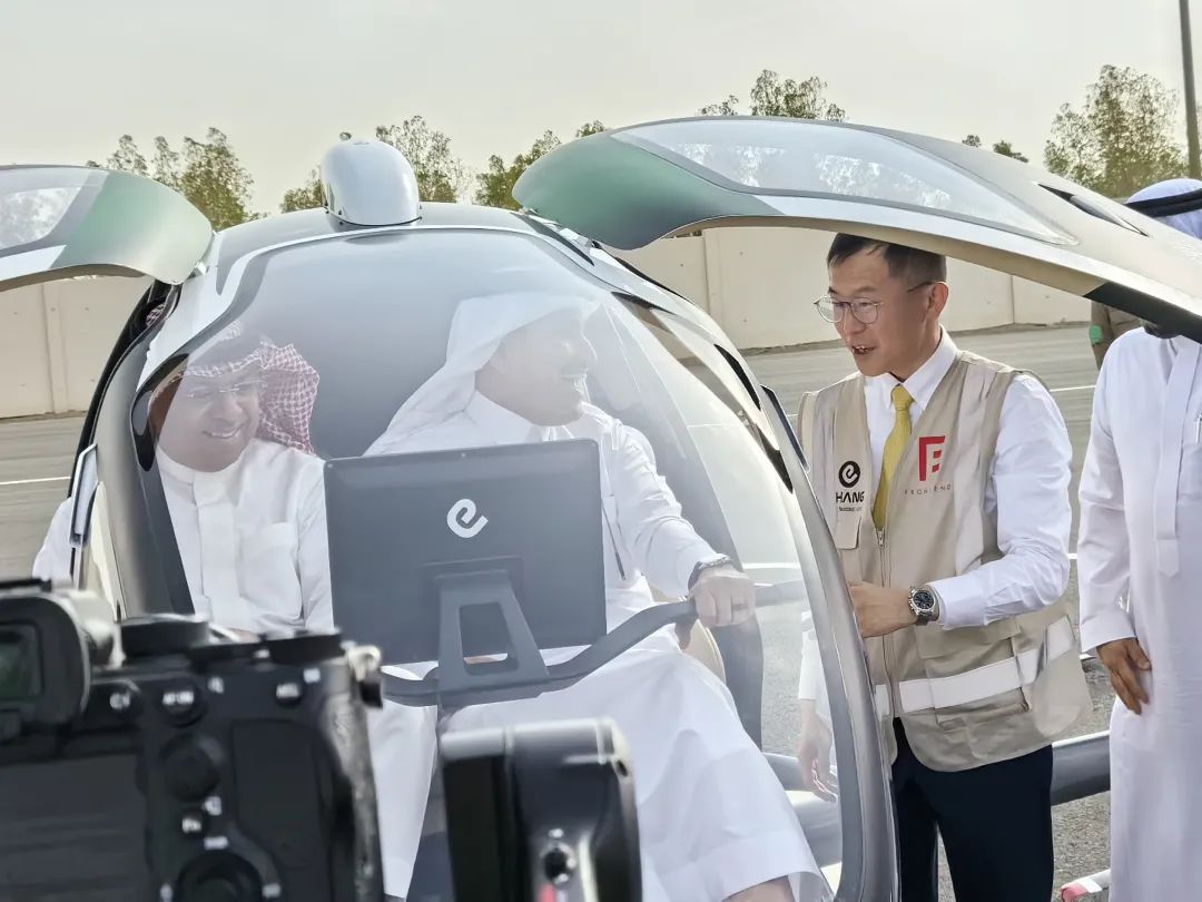 图:EH216-S无人驾驶电动垂直起降航空器在圣城麦加完成沙特阿拉伯首飞