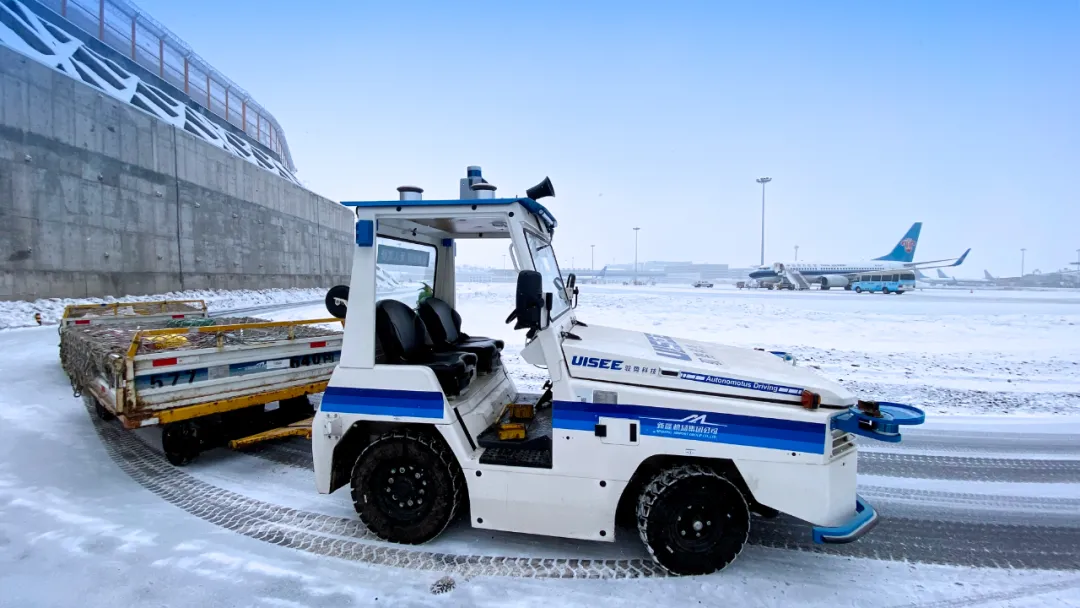 在乌鲁木齐机场进入机坪提供运营服务,经受住了新疆地区冬季零下20度的极寒暴雪天气,在运行中智慧检测机坪上的飞机位置并自动停车避让,展现了多车协同、精准停靠等运营技能,保证运输过程安全可靠。