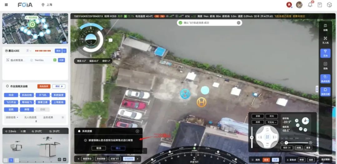 二次确认机制:在降落前进行二次确认,确保操作者对降落环境有充分的了解和控制,避免因误判导致的安全事故,用户也可连续框选新的降落点以便安全降落。