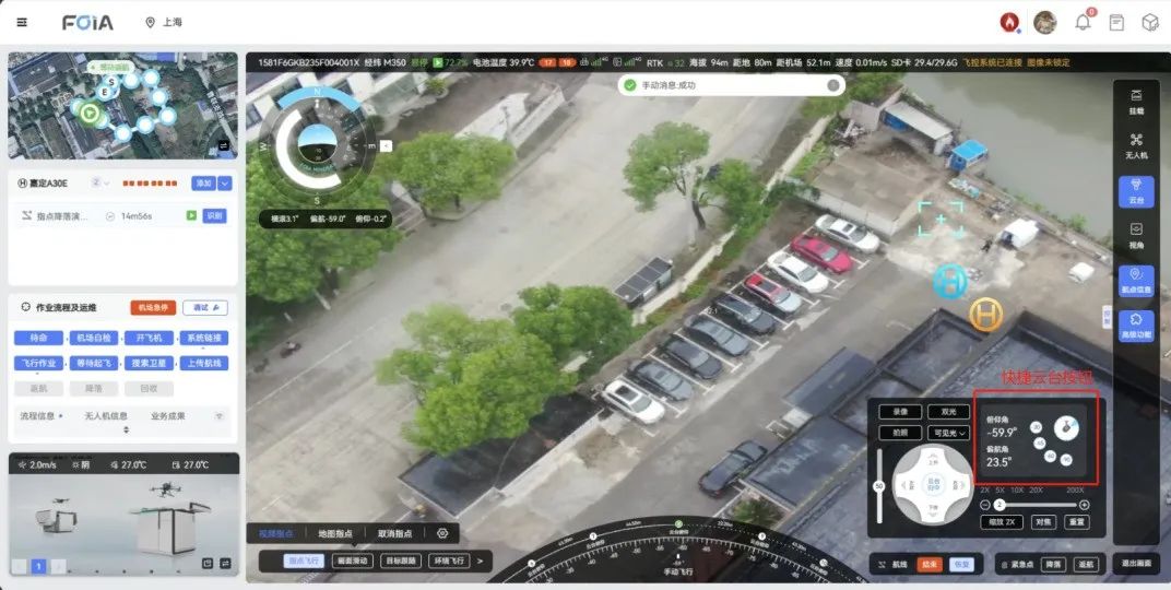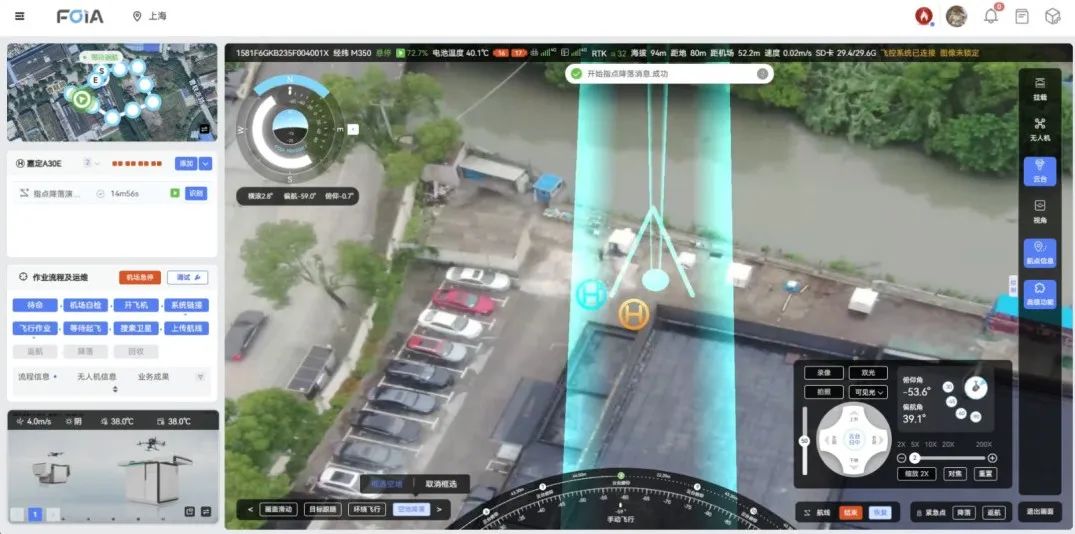 复亚智能无人机管理平台的空间指点和空地降落功能,以其智能化和自动化的操作流程,显著提升了无人机在城市巡检等应用场景中的安全性。复亚智能无人机管控平台目前开发了一系列高级功能,支持复亚机场/大疆机场2(部分高级飞行功能适配中),持续赋能低空作业。